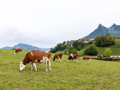 Oubliez votre voiture pour emprunter un des nombreux chemins pédestres, à proximité de notre établissement, ou pour vous rendre à Gruyères (5 min. à pied). La gare se trouve aussi à 5 min. de notre Ferme.
